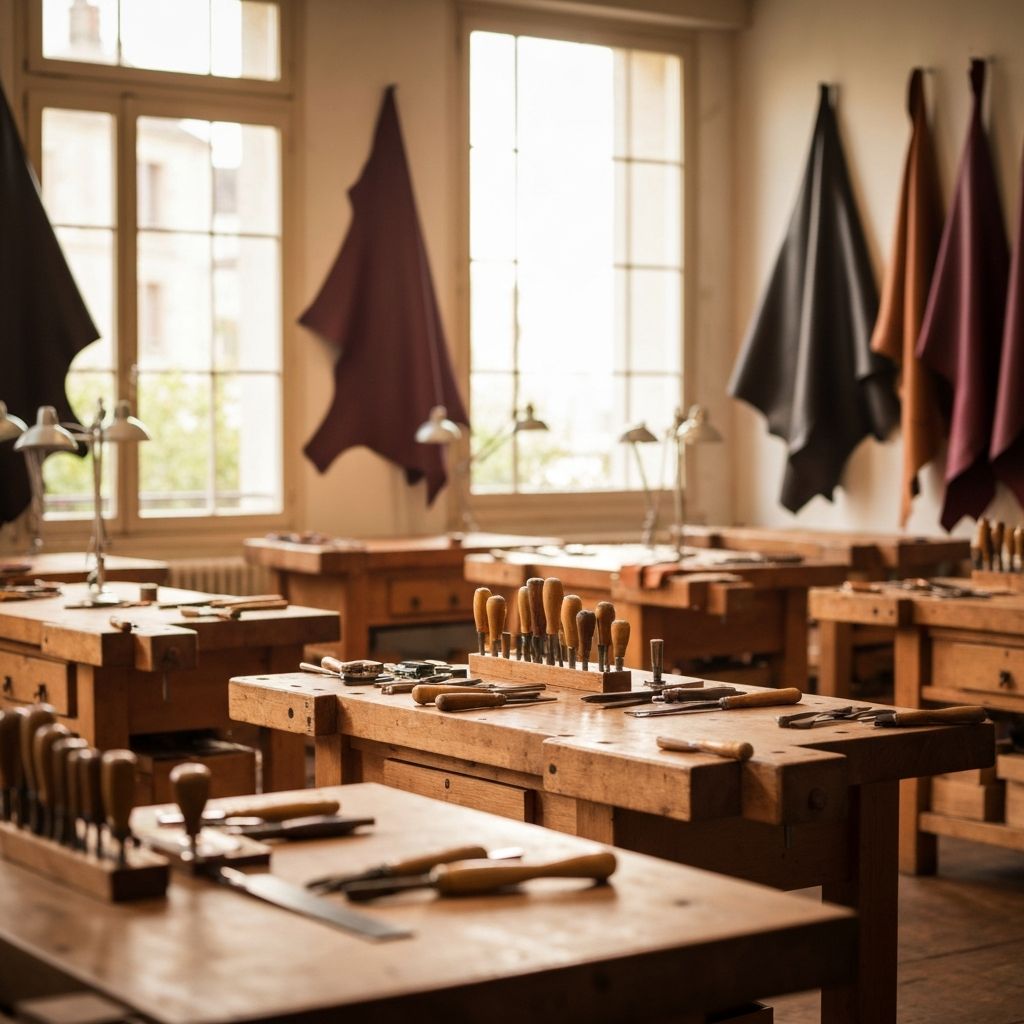 Chez Maison Élara, chaque création est le fruit d'un travail méticuleux, réalisé entièrement à la main dans notre atelier provençal. Nos artisans, formés aux techniques traditionnelles de la sellerie française, perpétuent un savoir-faire séculaire tout en l'adaptant aux exigences contemporaines. Cette alliance du passé et du présent donne naissance à des pièces uniques, conçues pour traverser le temps.